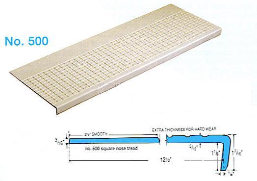 ALL molded rubber stair treads are furnished with a sanded back. All are available in Marbelized colors of #11 Grey, #20 Brick Red, #27 Walnut, #30 Mahogany, #40 Black, #43 Dark Teal, #46 Dark Grey, #47 Oak, #53 Green, #58 Oatmeal, #66 Slate, #70 Blue, #77 Birch, #85 Beige, #99 Peach, and #80 Plain Black